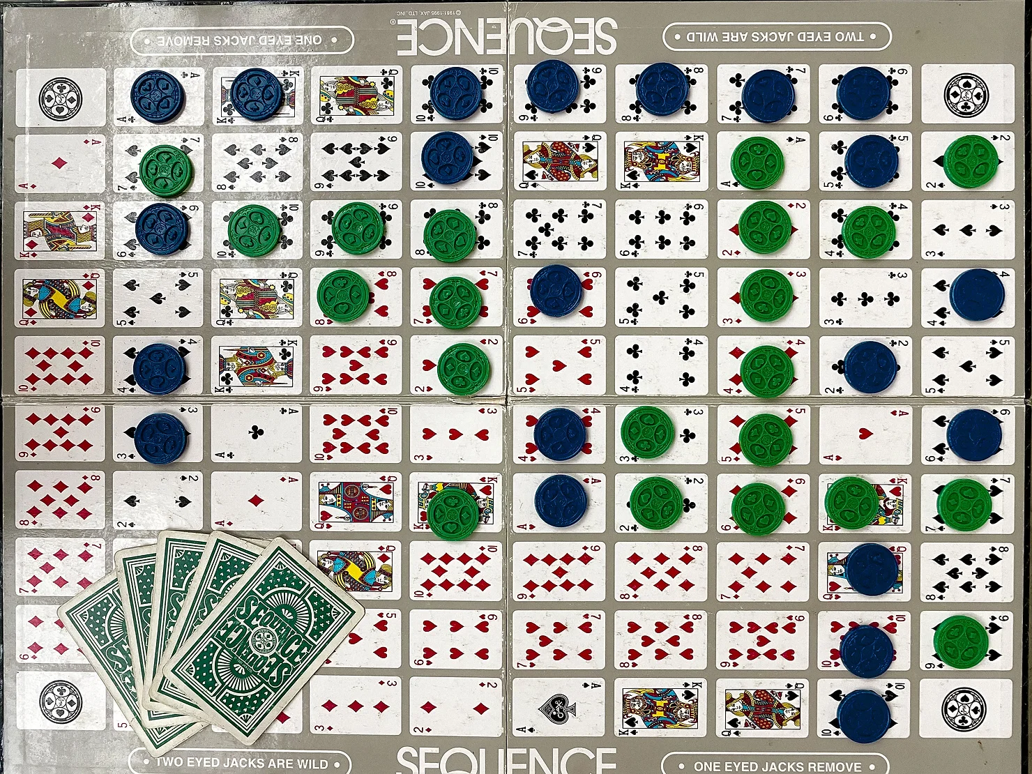 Due to the presence of Jacks, both cards of a value may be occupied on the board. Be able to spot those cards so that you can exchange the dead card for a playable one.