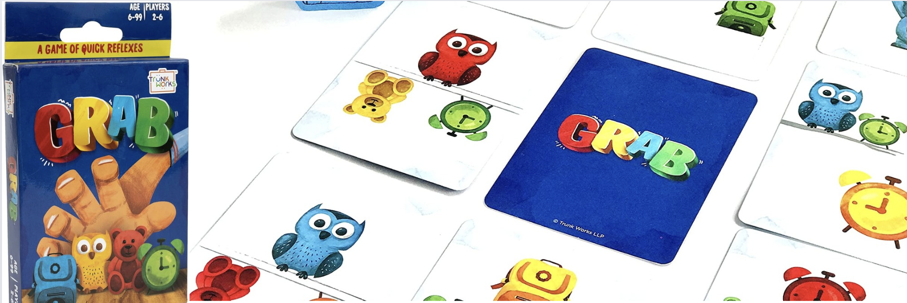 The game of Grab is obsessively simple and simply lovable. There are minimal rules and it is enjoyed by all ages. The players keep flipping cards over and be the first to GRAB the correct shape in the correct color. Just remember to keep it back in the middle.